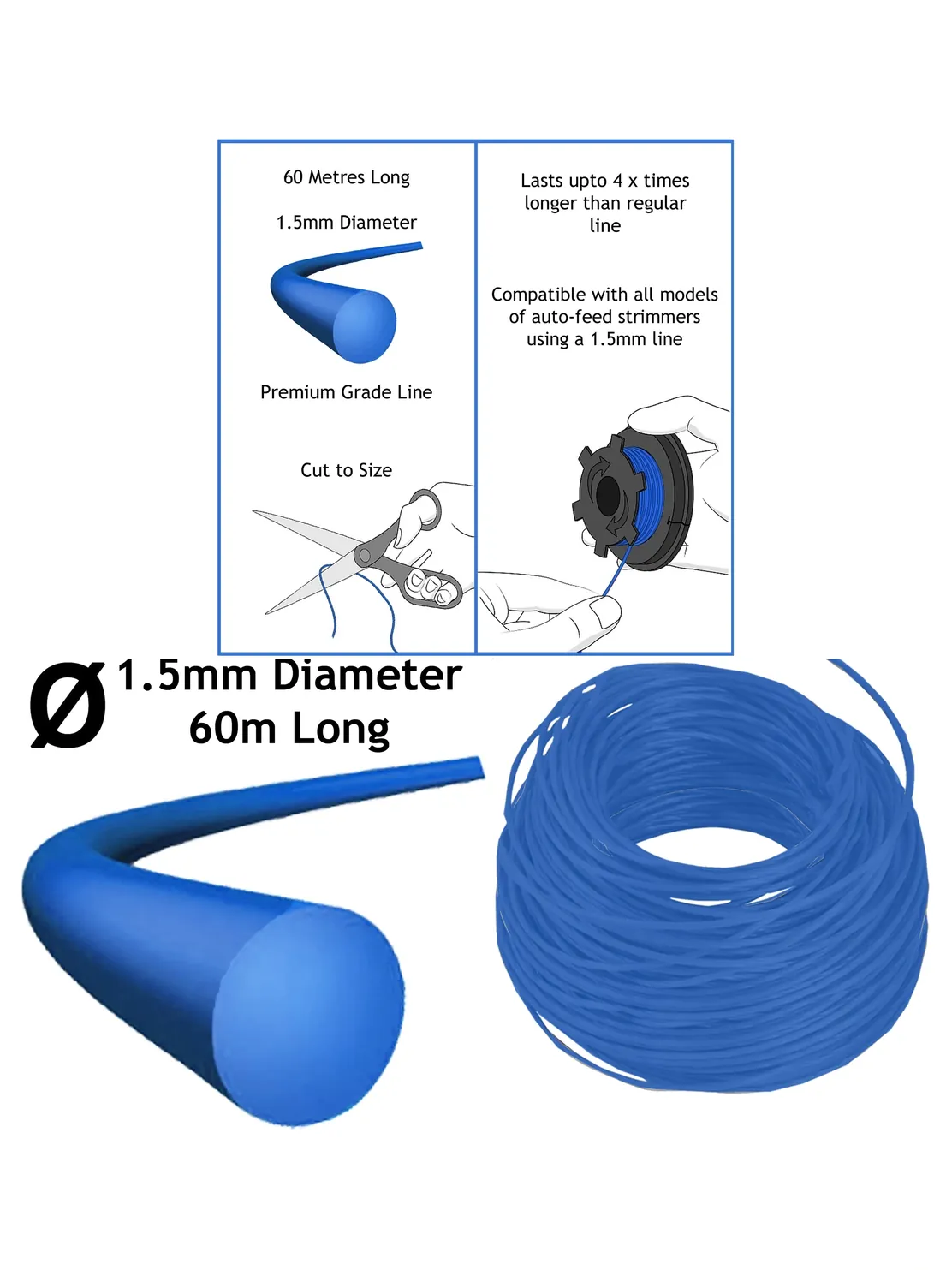 Blue 1.5 mm Trimmer Line – 2 Spools (30 m each) – Universal Auto‑Feed