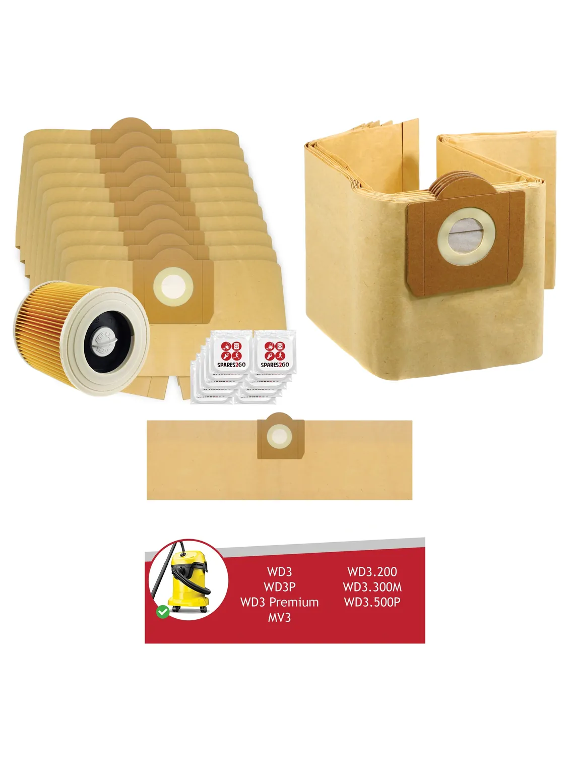 Upgrade your Karcher cleaning routine with a complete replacement set that keeps your home fresh and dust‑free. This 10‑piece kit includes premium double‑layer dust bags, a high‑efficiency pleated cartridge filter, and scented freshener tabs—everything you need for the Karcher WD3, WD3P and MV3 wet‑and‑dry vacuums.